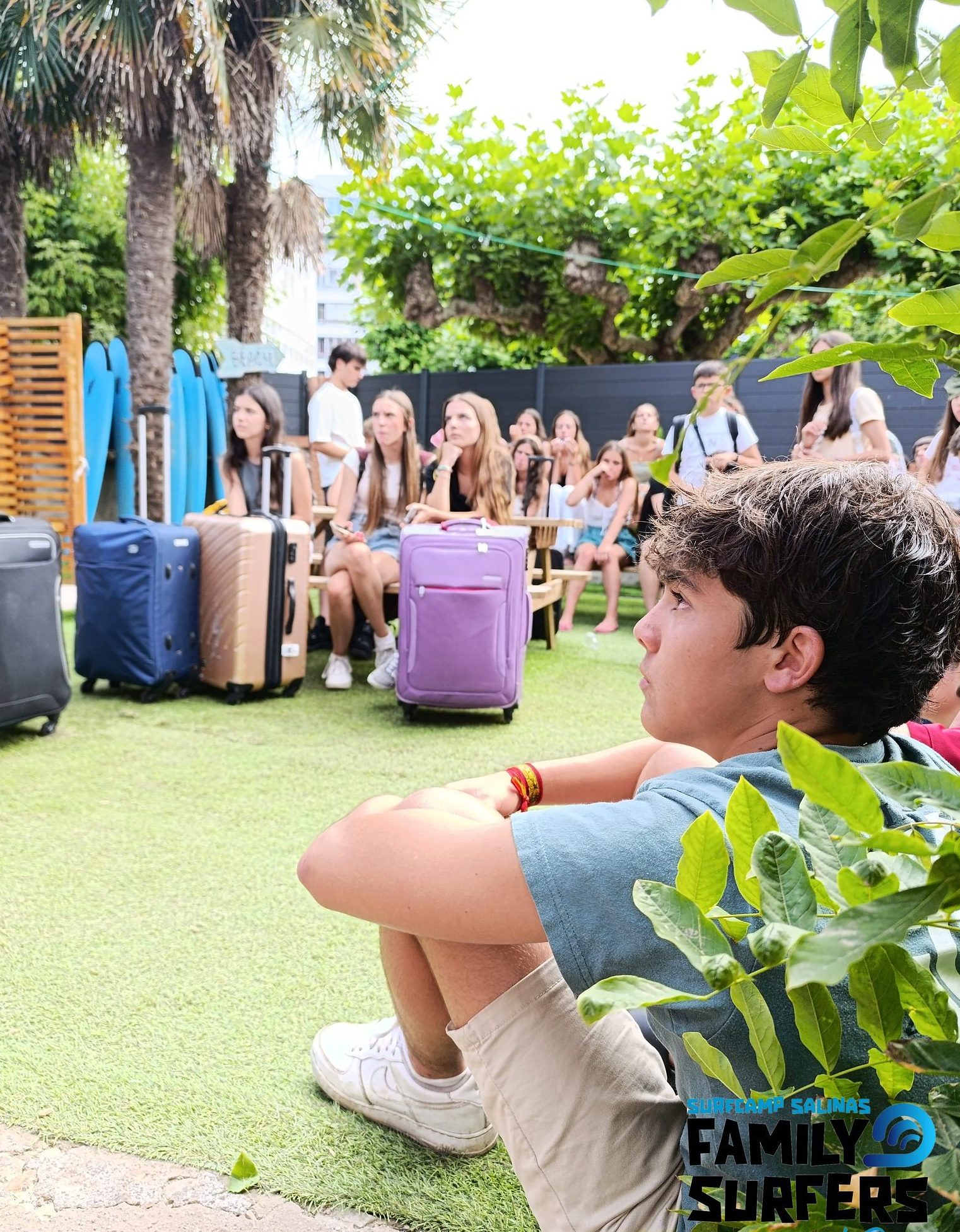 Los programas incluyen alojamiento tipo “SurfHouse” en Salinas, en instalaciones cómodas, con zonas comunes, jardín, sala de juegos y espacios para relajarse. Family Surfers